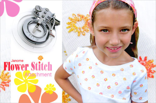 For more basic Janome sewing machines (5mm and 7mm), this a fun, easy way to add little decorative stitch touches in pretty thread colors!ย Be the flower girl of the sewing accessory world, sprinkling pretty posies over any project.