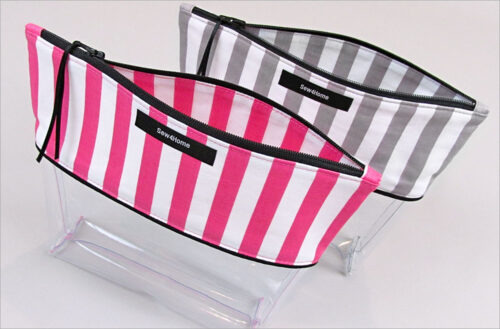 One of our most popular project categories is the Zip Pouch, because you simply cannot have too many in a variety of sizes and styles. Here we combine pretty cotton at the top with a see-through bottom in flexible vinyl.