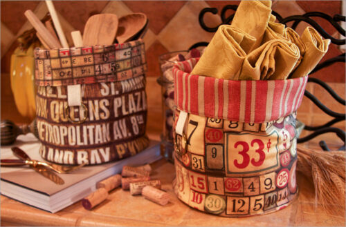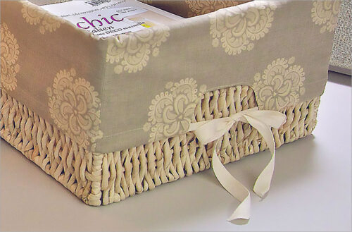As a bit of inspiration to organize your work surface; we have a set of easy-to-make liners that are a great way to add color and pattern to otherwise ordinary wicker baskets. Includes steps for how to measure your baskets.