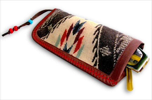 A soft case keeps track of eyeglasses and protects them when tossed into a larger bag. This fast and easy project can be made with scraps. We used a piece of classic Pendleton wool and added a cool leather + bead fob.