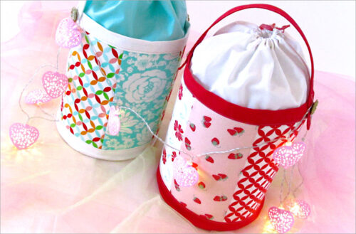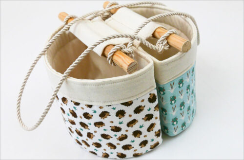 A classic round fabric basket has endless uses. That means a classic round fabric basket SET has endless uses x2! One large, one small, both quilted, both with looped handles. Itโ€™s a fun + useful introduction to dimensional sewing.