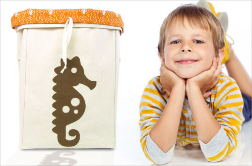 No more clothes on the floor! Our two-part hamper has an outer structured box with an inner drawstring bagโ€ฆ same idea as your garbage can. Kids can fill โ€˜er up, then cinch โ€˜er up, and carry the dirties to the wash.
