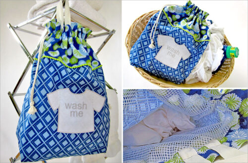 We scaled down a traditional laundry duffle to kid size, making it easy to fill and carry to the laundry room. Plus, the super-cute appliquรฉ on the front leaves no doubt about what needs to be done with the bag’s contents!