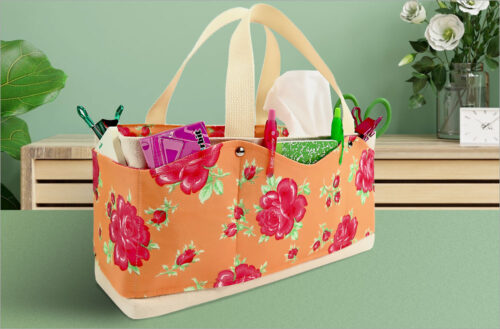 Spring cleaning doesnโ€™t have to be all spray bottles and rags. Tidy up surfaces all around the house with our cute fabric basket. The design features inner and outer pockets, double carry handles,ย andย a removable center divider. No patterns required; all cuts are standard rectangles.