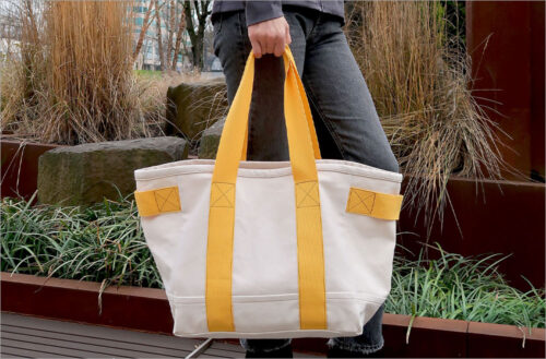 With its wide webbing straps and sturdy carry handles, this is a hardworking carryall when youโ€™re out and about โ€“ fill it up with storables when youโ€™re home. A full 14โ€ wide x 13โ€ high x 10โ€ deep! Available now in our Etsy Shop.