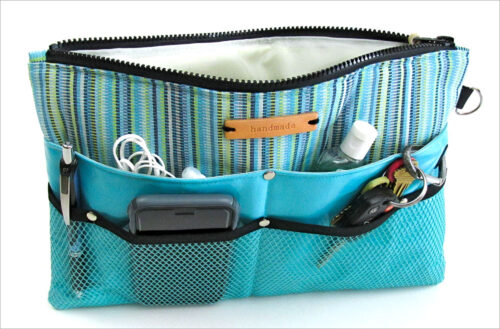 Great for smaller surfaces! At 12โ x 5โ x 6โ, this cool caddy can be sitting pretty anywhere you need a little organizational help. The pocket panel wraps all the way around and is divided into eight sections in a variety of sizes.