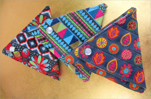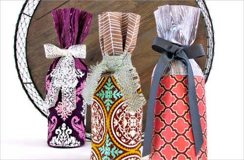 Three cute bags in three handy sizes. So easy and so useful as gift bags or for any small storage task. Make a coordinated set with matching accent borders as we did or choose just one size now, saving the other options for later.