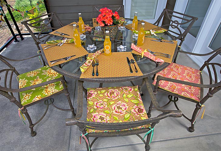 Your Patio Party guests will stay longer if they have somewhere soft and pretty to sit. Give your chairs comfort and style with a set of custom seat cushions. Outdoor furniture often comes with a set of basic cushions, but the standard colors are pretty bland and boring. It’s much more fun to mix and match colorful fabrics to create a unique seating experience.