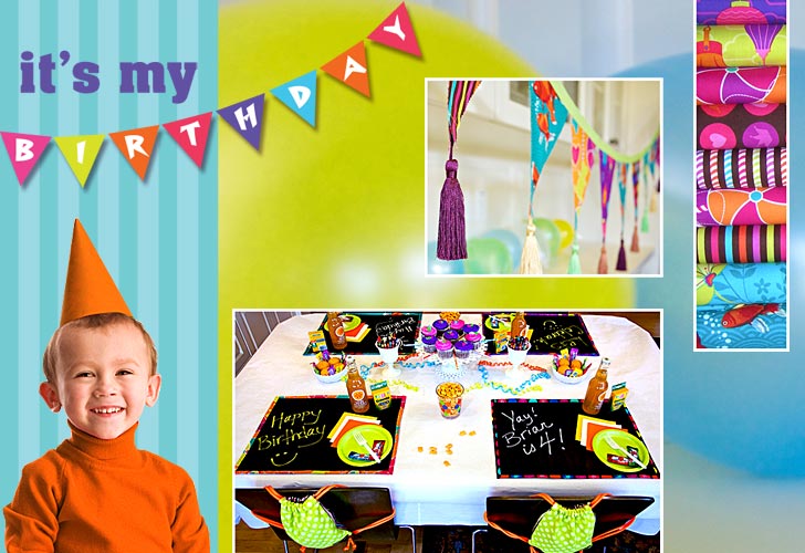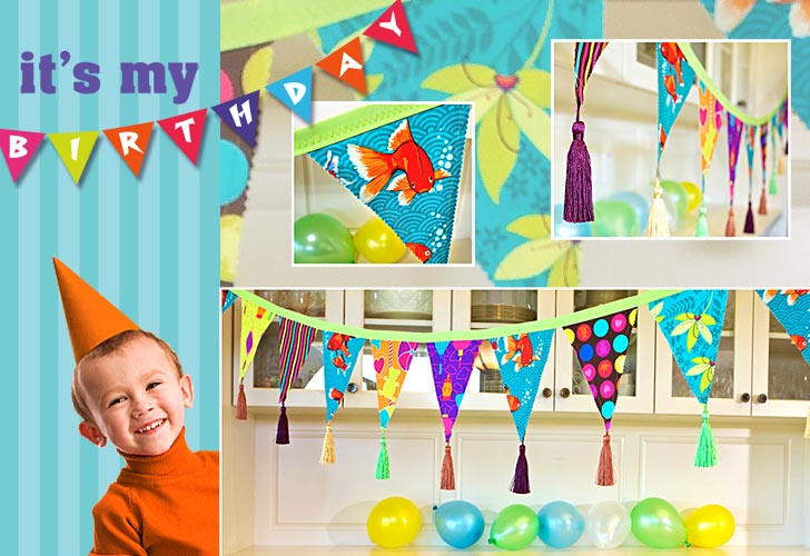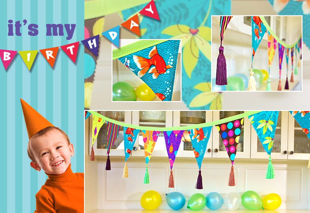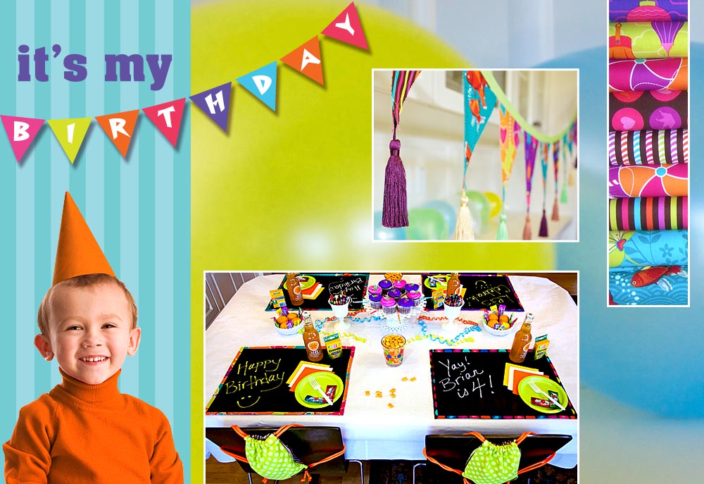 What’s the biggest day of the year for any kid? His or her birthday! It’s the one day of the year to be the center-of-attention… no questions asked. Our summertime birthday celebration has a colorful, Day At The Beach theme and is a perfect choice for either a boy or a girl turning about four, five or even six. It seems everywhere you turn these days, you find those paper and plastic sets of cheesy decorations and party favors with grinning television and movie characters to tempt your little one. Enough already! We found our initial inspiration in the vivid designs of Patty Young’s new Playdate collection from Michael Miller Fabrics. When you create your own decorations and take-home gifts, you throw a party that is more memorable, more unique, and more green, because nearly all the elements are reusable.