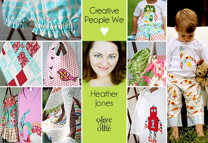 Welcome to a new article series here at Sew4Home, “Creative People We Love.” We’ve been lucky to discover wonderfully clever and inspiring folks on our own journey, and we want you to know about them too. By supporting one another, we keep the handmade banner flying high. Our first profile is Heather Jones of Olive & Ollie, a very charming gal creating custom children’s clothing as well as beautiful blankets and quilts in the heart of Ohio. Her philosophy says it all, “I believe every child deserves something made by hand. ” We do too, Heather!