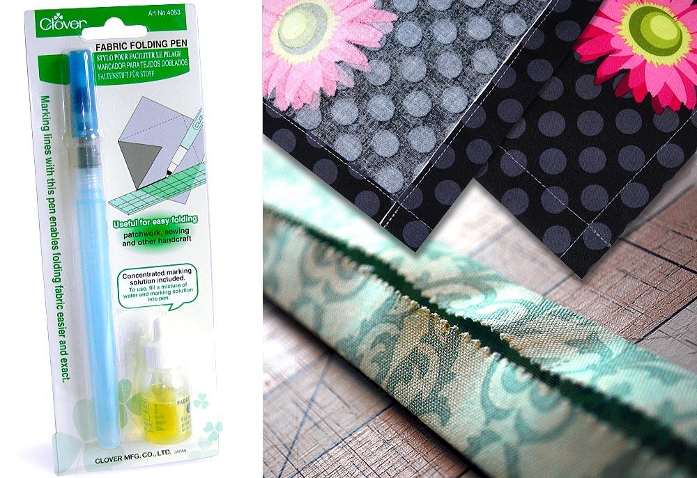 Teeny tiny folds, such as those along the edge of patch pockets, seem to me like an accident waiting to happen. Holding the fold with the fingers of one hand, pressing with a hot iron in the other. Ouchie! Plus, maybe it’s just me, but I often struggle to keep the fold consistent, especially on a long piece. We tested the Clover Fabric Folding Pen and found it to be a handy way to create more exact folds for patchwork, hems, cuffs, pockets or anywhere a small exact fold line is required. The pen draws a liquid line, and the special liquid solution ever so slightly weakens the fabric’s fibers along that drawn line. Not enough to damage the fabric; just enough to allow it to easily crease. It doesn’t work on all fabrics, but on the ones it’s appropriate for, it is pretty darn cool.