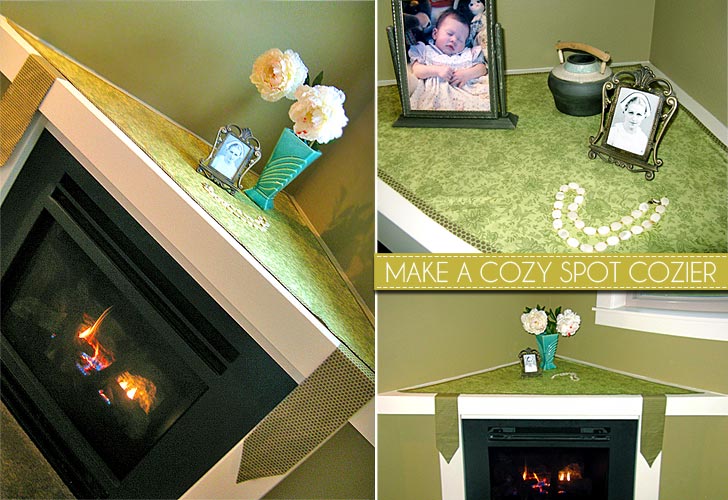 Life is not always square. Other geometric shapes sometimes waft through to give our brains a design challenge. I have a corner fireplace in one bedroom, which means the mantle is… a triangle. In addition, all the moldings in the house are very Arts & Crafts, so ruffles and frou-frou need not apply. After staring into the triangle corner for awhile, Alicia came up with a simple yet striking solution: a simple bound triangle with two drop panels to accentuate the heavy vertical design of the fireplace surround. Proving once again that, a) Alicia is smarter than me, and b) there’s always a solution to your home dรฉcor challenge.