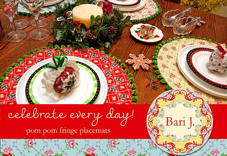 We’re so excited to have Bari J. Ackerman back in the house! She has returned with another fun tutorial for us. From her Keeping it Real Sewing Patternsโขย by Bari J.โข,ย comes a fun set of circular placemats fringed with pom-poms. Bari also spent some time chatting with us about the inspiration behind her latest fabric collection, Country Lane, her first experience with her very own booth at the Houston Quilt Market, and exciting news about her debut association with Lecien Fabrics and a new book coming out in January.