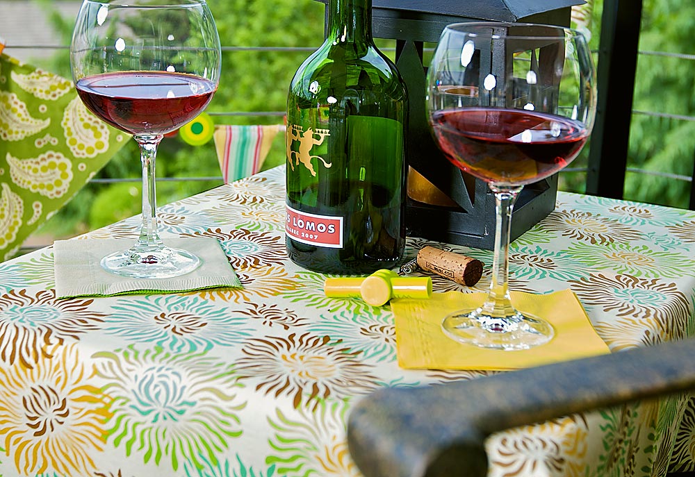 We always like to have at least one project that makes use of leftover fabric scraps. For our Patio Party, we created this fun party banner. Just print out the provided pennant shapes and cut out as many as you’d like from your available scraps. All you’ll need to buy is a length of cording, and, if you want, colorful beads to string in between the pennants. It’s a great green alternative to traditional crepe paper.