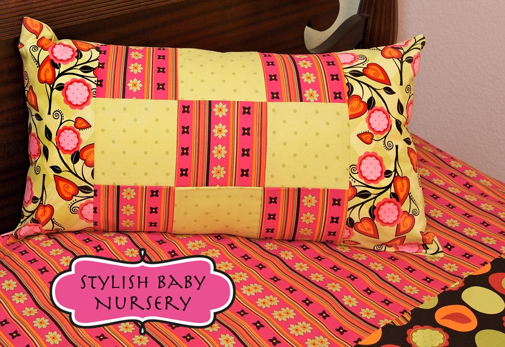 This is our favorite pillow pattern. Even though the style is the same, it looks different in each different fabric combination. It’s so simple and uses such a tiny bit o’ fabric, making a pile of pillows is a snap. The envelope back means it’s easy to pop out the pillow form and wash the pillow cover, and we all know easy laundering is a MUST for any nursery item.