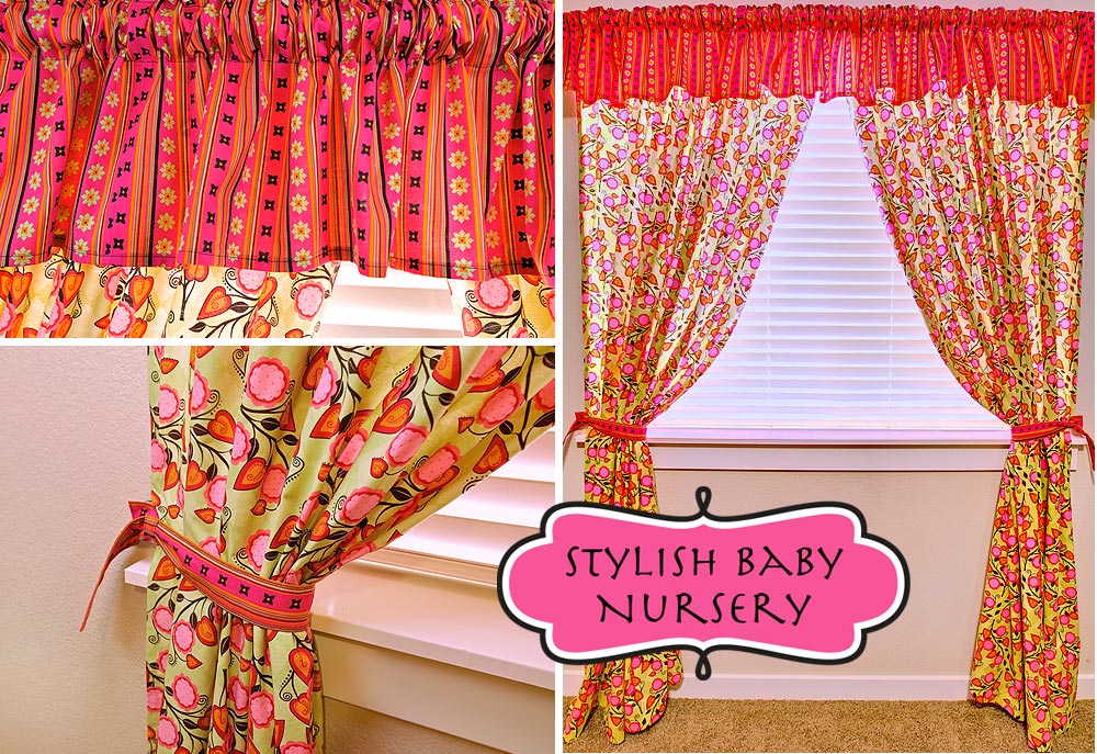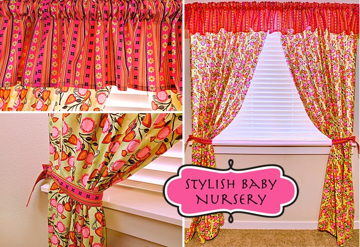 Stylish Baby Nursery: Flowery Curtains & Striped Valance