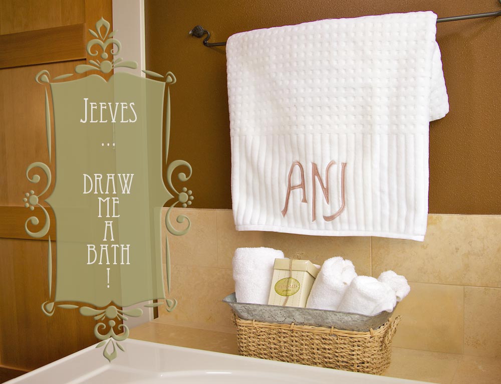 Monogrammed towels lend a lush and elegant accent to any bathroom. And they make fabulous gifts for newlyweds or an anniversary. The only problem is they’re often far too pretty to actually use. I’ve gotten past this problem by pretending my bathroom is really part of a luxury suite at a five-star resort. This image is usually shattered when my teenage son wanders through the door in his boxers looking for toothpaste. If monogrammed towels keep me close to my dream … I’m usin’ ’em!