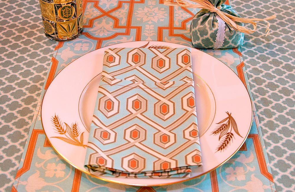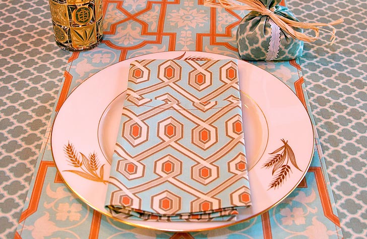 Adding a simple fabric border kicks this napkin up a notch. Napkins are a great beginning project and a great way to practice hemming. We made all our napkins match for our Citrus Holiday table, but it would also be snazzy to do a different, coordinating trim on each person’s napkin. Not only would it be a great way to use up fabric scraps, you could also keep track of which napkin belongs to which guest.