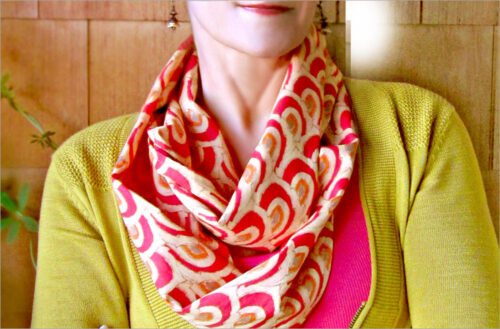 Itโs an endless circle of loveliness you can twist into a number of interesting shapes. Try it in lightweight rayon, voile or batiste for a great look to dress up or down for any occasion. Best of all… so very easy to make.