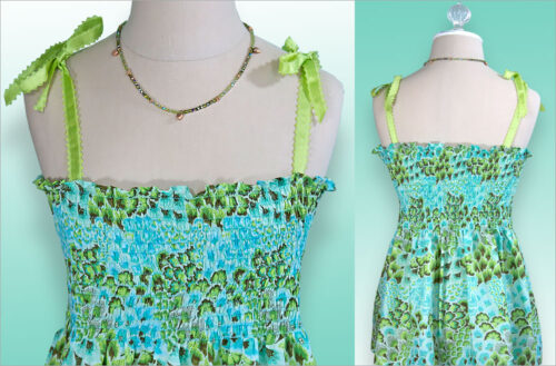 Learn how to do elastic shirring; itโs easier than you think thanks to elastic thread. Then, whip up a super cute summer sundress in your favorite fabric. Includes links to the full shirring tutorial and a matching sun top.