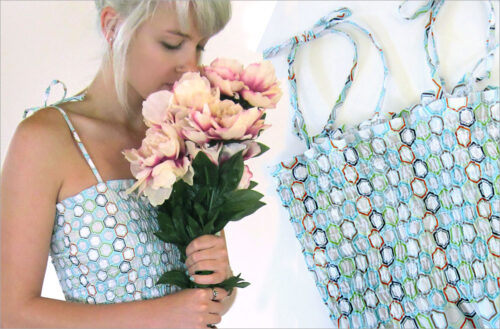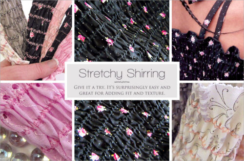 Elastic shirring creates a wonderful stretchy texture. It occupies the space between the simplicity of gathering and the intricacy of hand-smocking. We cover the technique itself as well as several project ideas.