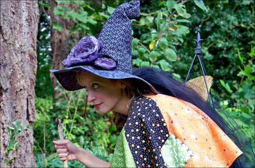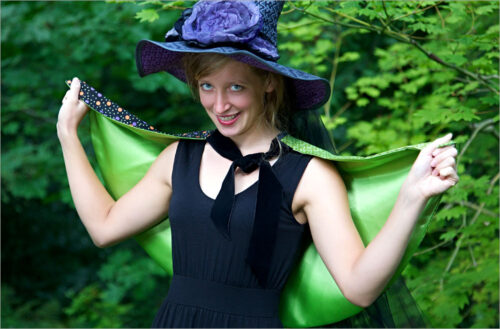No self-respecting Halloween witch would be caught out under the moon without a flying broom and a kookie cape. Our cape project is stylishly short, using 4 witchy wedges cut from fat quarters and lined with green satin.