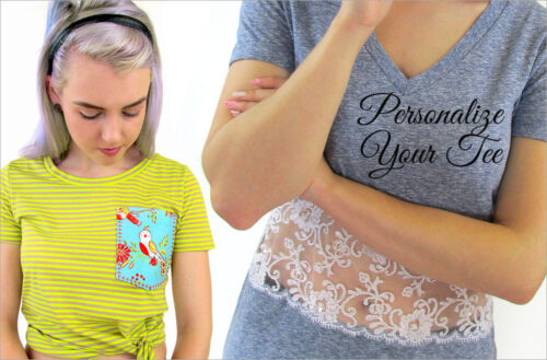 Turn standard off-the-rack T-shirts into something special with pockets, decorative stitching, inset panels, and cropping. Itโs a super simple way to use up fabric and trim scraps to create an instant wardrobe upgrade.