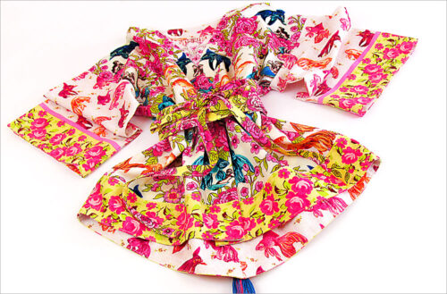 The โfantailโ refers to the unique triangular back on our lightweight wrap, which is further accented by a removable tassel. Careful fussy cutting of all the pieces creates a striking style. The instructions also include the matching obi style belt.