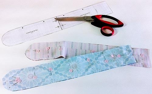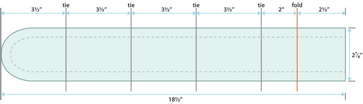 There are marks on your pattern piece that indicate the position of the fold and placement of the ties. The diagram below shows the exact measurements and positioning: