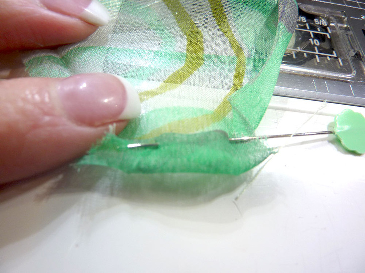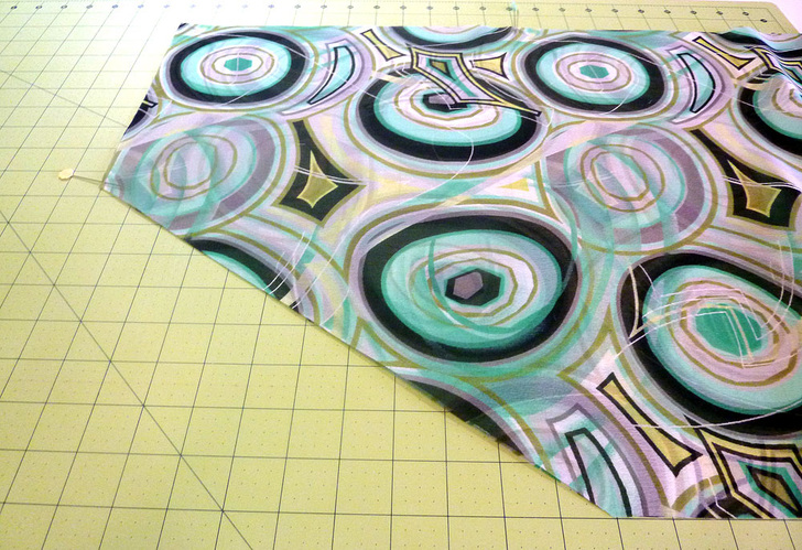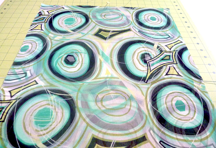 If you’re new to working with sheer fabric, like chiffon, check out our tutorial for some tips and tricks. For example, when cutting sheers, it’s best to cut as a single layer; once you get the fabric straight on your mat, tape it in place so it doesn’t shift. You could also use push pins or fabric weights, depending on your cutting surface. You might also like our tutorial on Sewing with Specialty Fabrics.