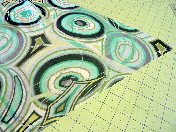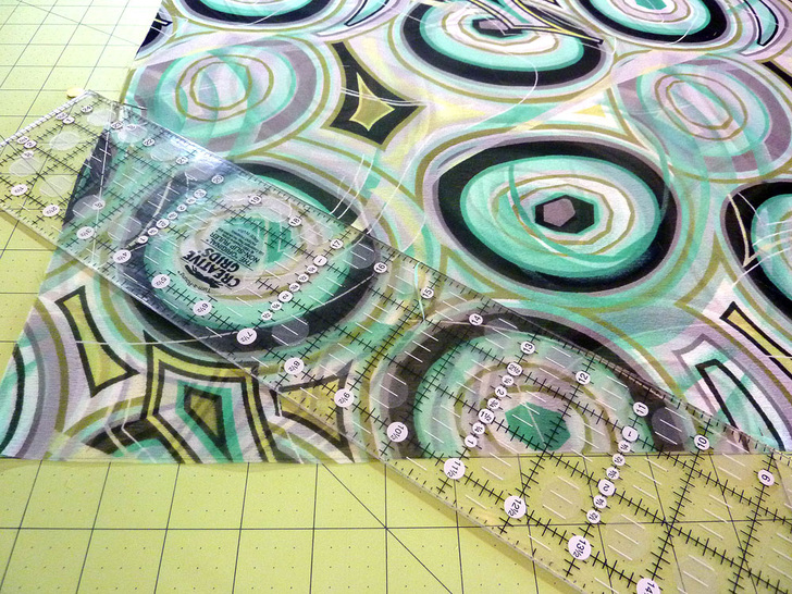 - Cut an approximate 52″ x 52″ square on the bias. The exact size is up to you. We recommend simply cutting the largest square possible, on the bias, for your fabric.
