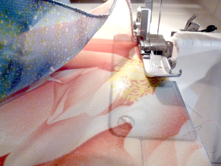 - Starting at one corner, serge the entire perimeter of the scarf.