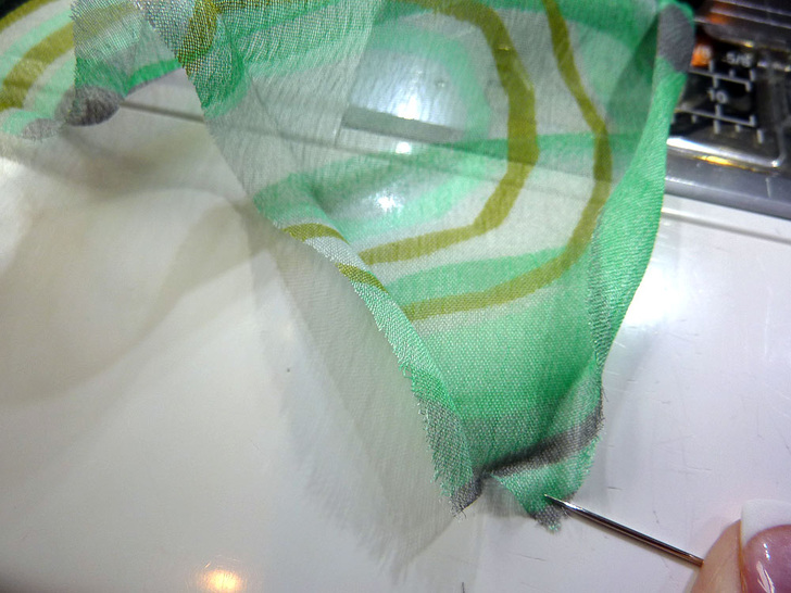 - To make the pretty points on both ends, fold the cut chiffon piece in half so the two 17″ ends are flush.
