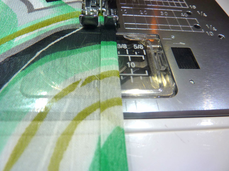 NOTE: We felt the larger double-turn hem was the best bet to give us a bit more fabric to attach our pretty sequins. You could also experiment with a traditional rolled hem. If you are new to this technique, see our tutorial on How To Make Rolled Hems by Machine. You might also want to review our tutorial on How to Make Narrow Hems with Clean Corners.