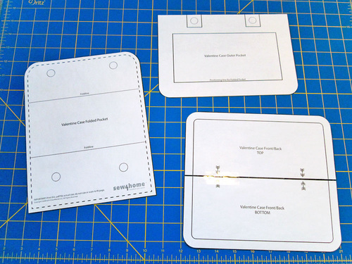 - DOWNLOAD AND PRINT: the FOUR pattern pieces: Valentine Case Front/Back TOP, Valentine Case Front/Back BOTTOM, Valentine Case Outer Pocket, and Valentine Case Folded Pocket, which have been bundled into ONE PDF to make the download easier.