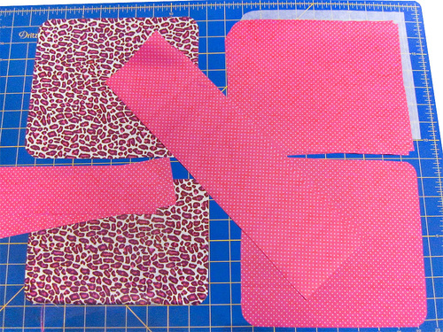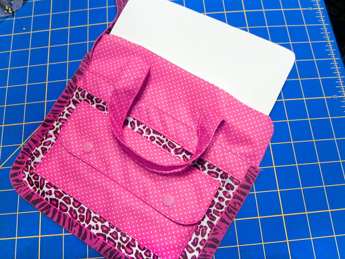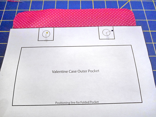 - Using the Valentines Case Outer Pocket pattern piece, cut ONE piece from the same fabric you used for front of the case (Little Monsters and Sassy Cheetah in our two original samples).