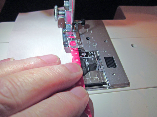 - Edgestitch along the bottom of the binding through all the layers, removing the clips as you approach each one.