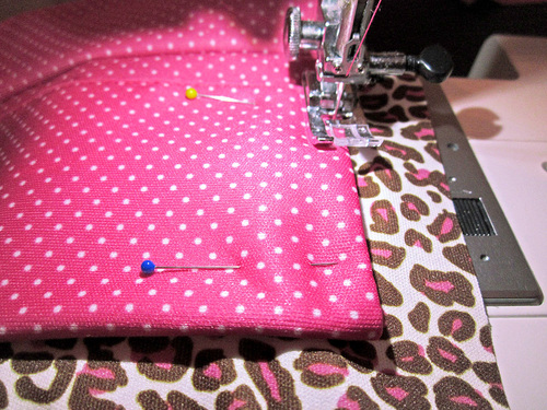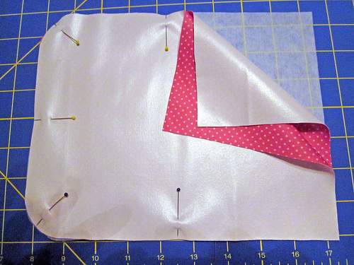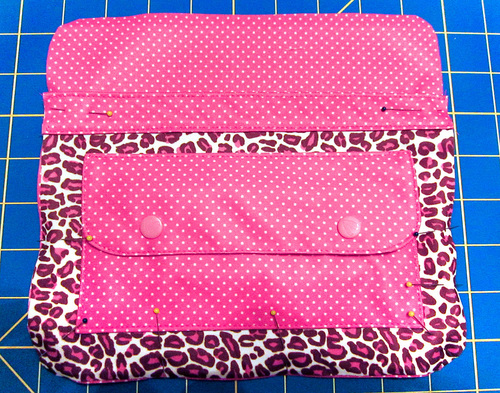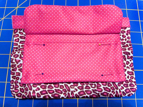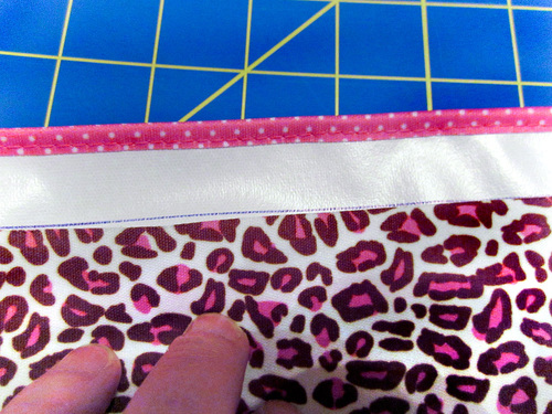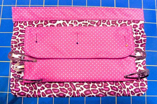 - In the same manner, place the outer vinyl pocket on the FRONT panel (Little Monsters and Sassy Cheetah in our two original samples). Align the outer and bottom edges of these two layers and pin or clip in place.