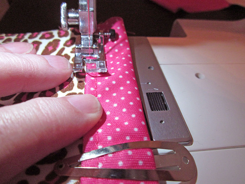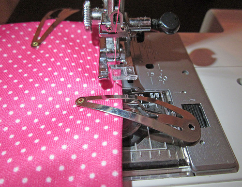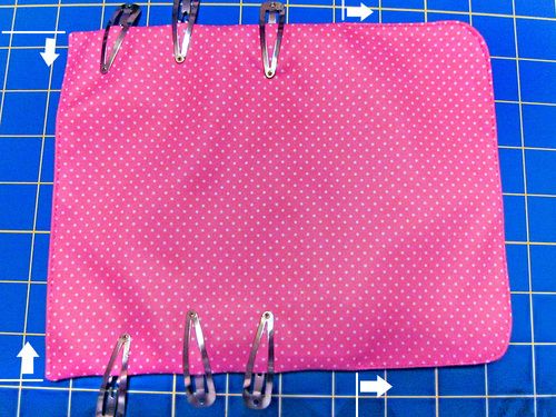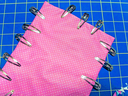- Leave the remaining sides un-edgestitched and leave the clips in place.