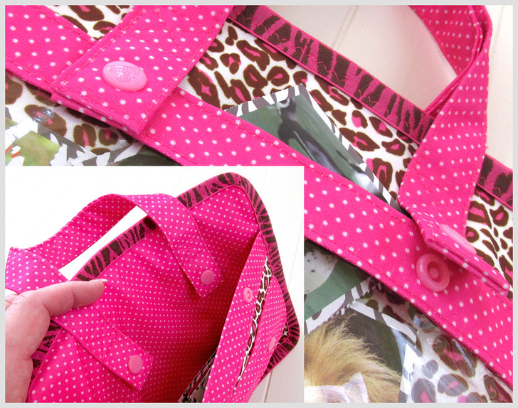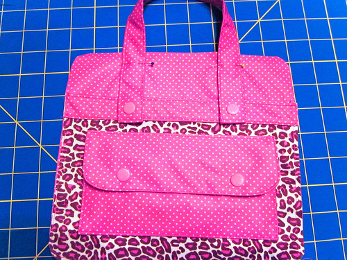 - Repeat to attach the remaining handle and snaps to the opposite side over the vinyl pocket.
