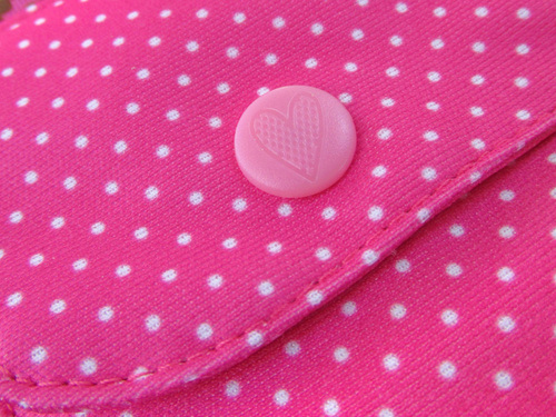 When you’re a kid, Valentine’s Day is the perfect combination of giving and receiving. It’s fun to plan and put together cards and treats for your friends and family; then it’s a thrill to see what you get in return. The occasion is certainly auspicious enough to demand its own special carrying case. Ours is super cute thanks to novelty PUL (polyurethane laminate), fold over elastic, and plastic snaps. PUL looks great and wipes clean… a bit like kids themselves! The case is stabilized with an inner layer of cardboard – although firm foam or flexible template plastic would also work well. We designed three generous pockets so little fingers have lots of places to put important stuff.