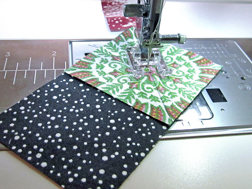 NOTE: We used our Janome Quarter Inch Seam foot to keep our stitching lines perfect ¼” seams. This foot has a flange, which you can run along the drawn line. Most other brands will have a similar foot.
