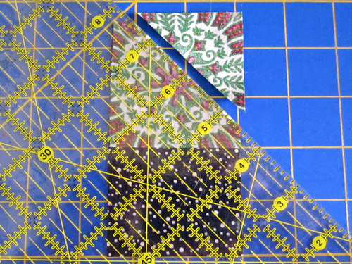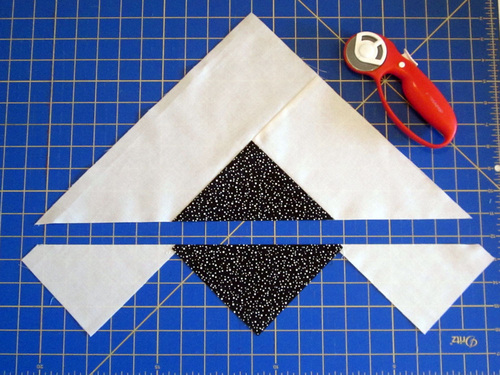 - Place a ruler from mark to mark. Using a rotary cutter, trim away the excess.