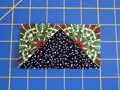 - Press the second triangle away from the block to complete the Flying Geese unit.