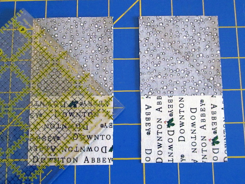 - Place another 2½” square right sides together with the opposite end of the rectangle, aligning the 2½” sides.