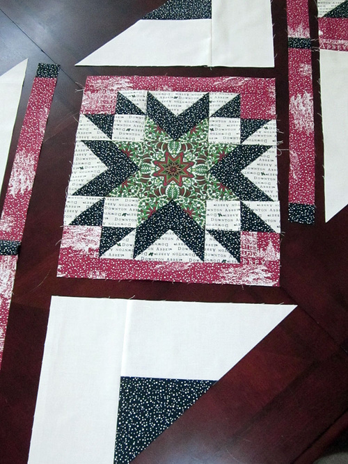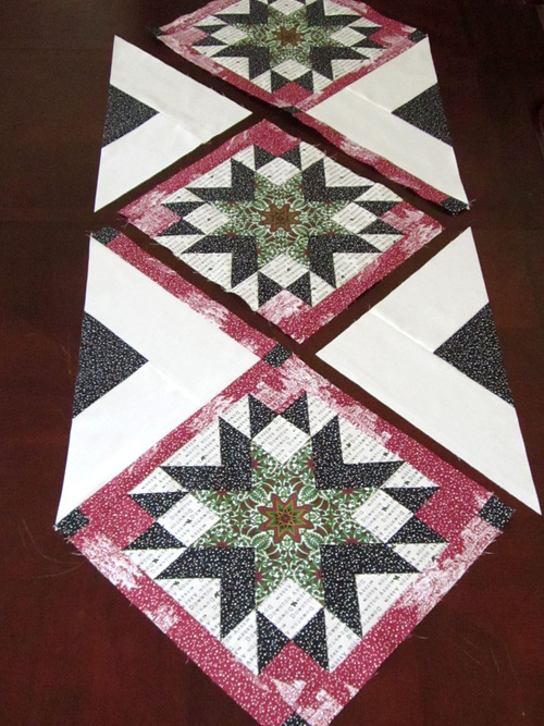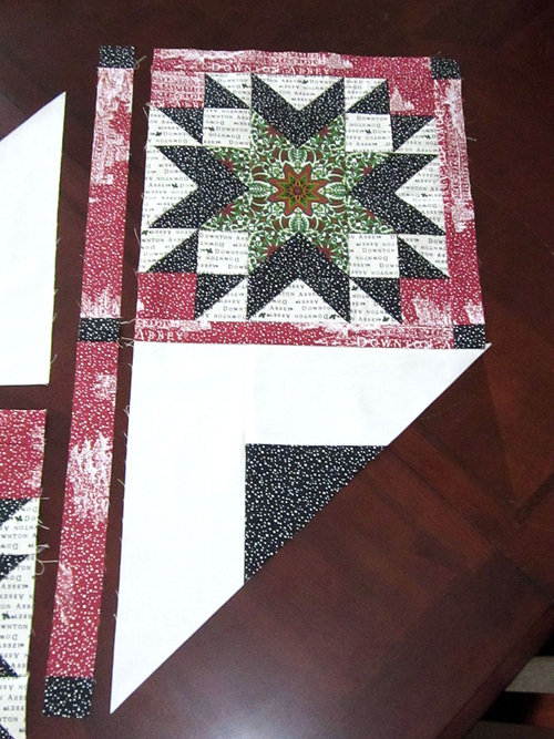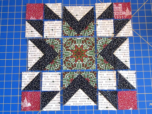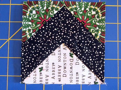 - Place the combined Flying Geese units around the center the their points facing the center square.