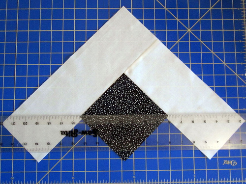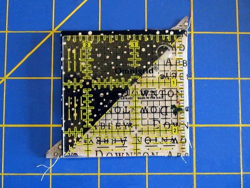- Again using your clear ruler, measure ¼” to the right of the sewn seam and trim away the excess corner.
