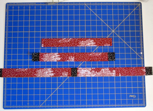 TWO of Unit 1: 1½” square, 12½” strip, 1½” square, 12½” strip, 1½” square
