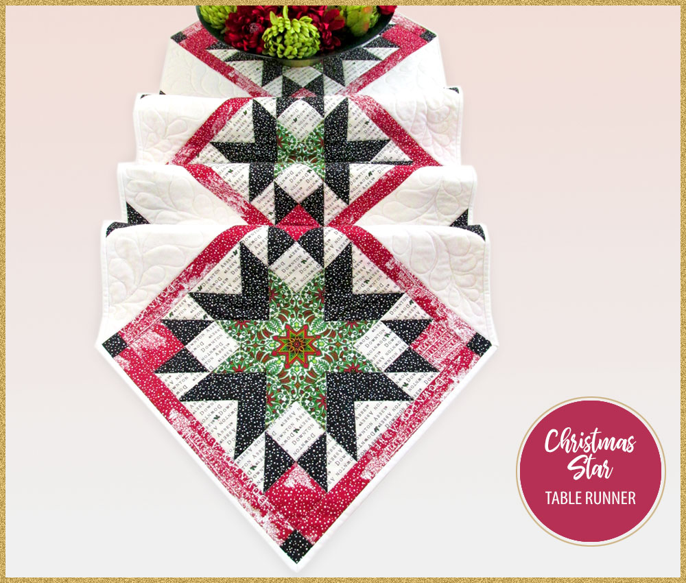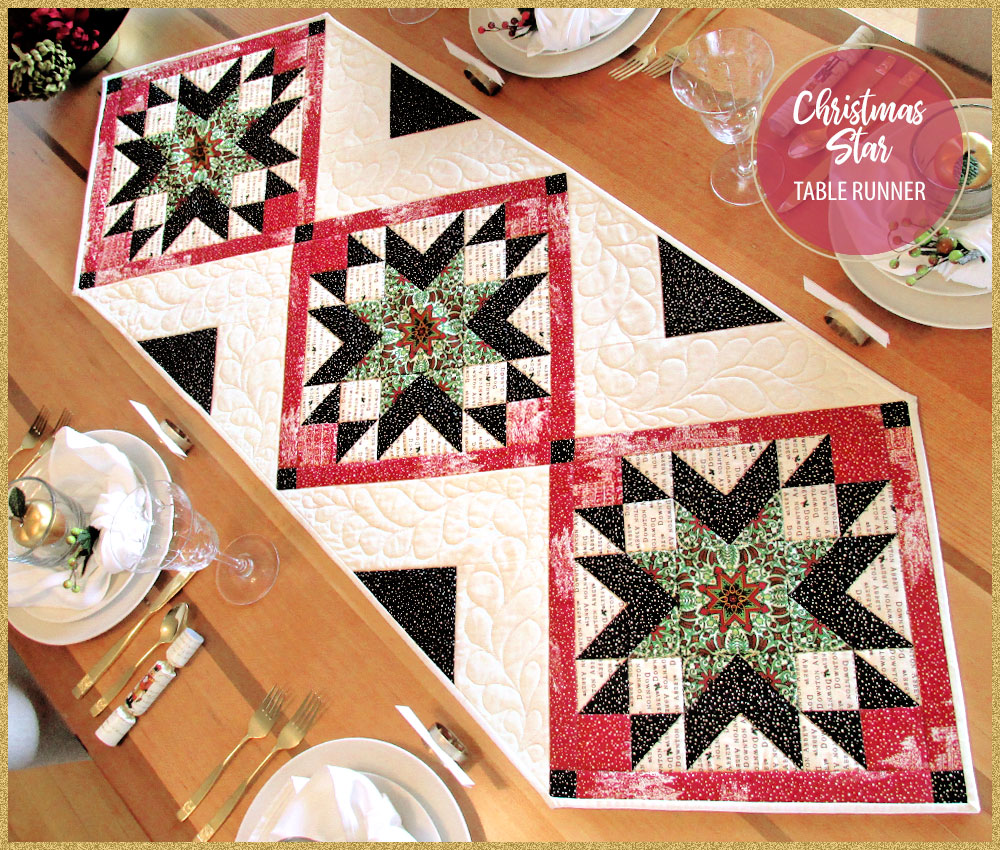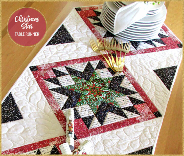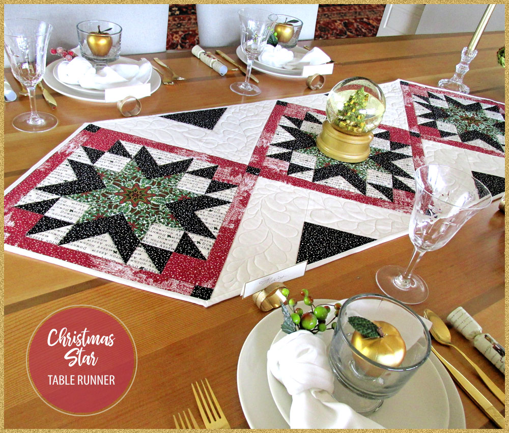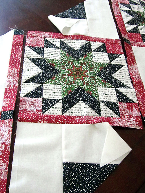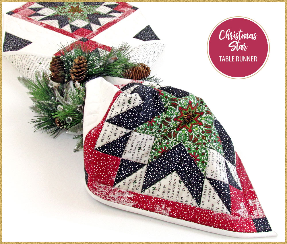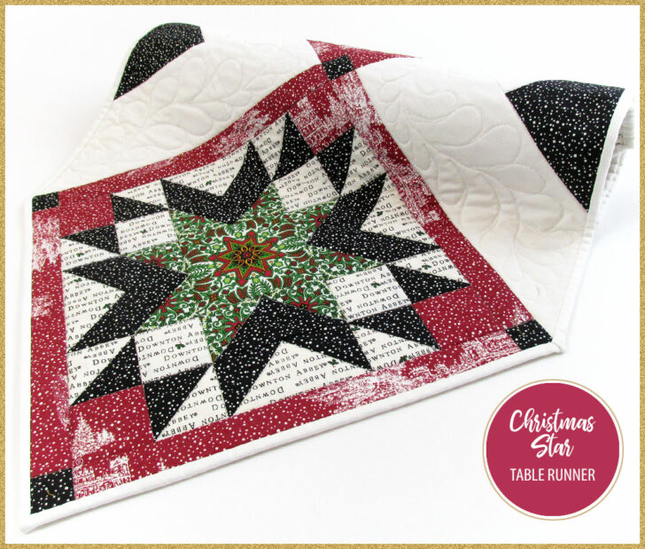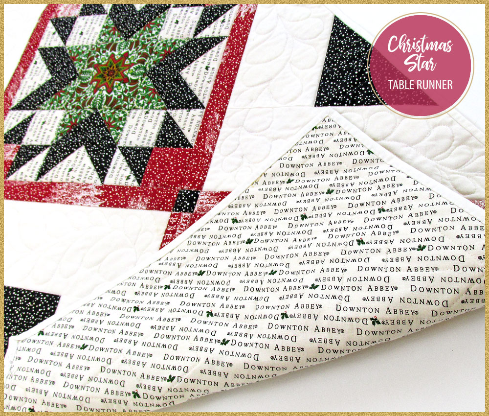 This gorgeous quilted table runner was originally designed to feature the Downton Abbey fabric collection from Andover Fabrics. However, the traditional patchwork star design is one that would work well with any number of current quilting cotton collections – especially ones that feature a similar palette of both dark and light colors and a selection of petite prints. Look for collections rich in color with layered motifs.