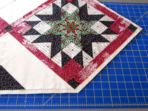 - Arrange the block on a flat surface. A 4½” fussy cut star should be at the center.